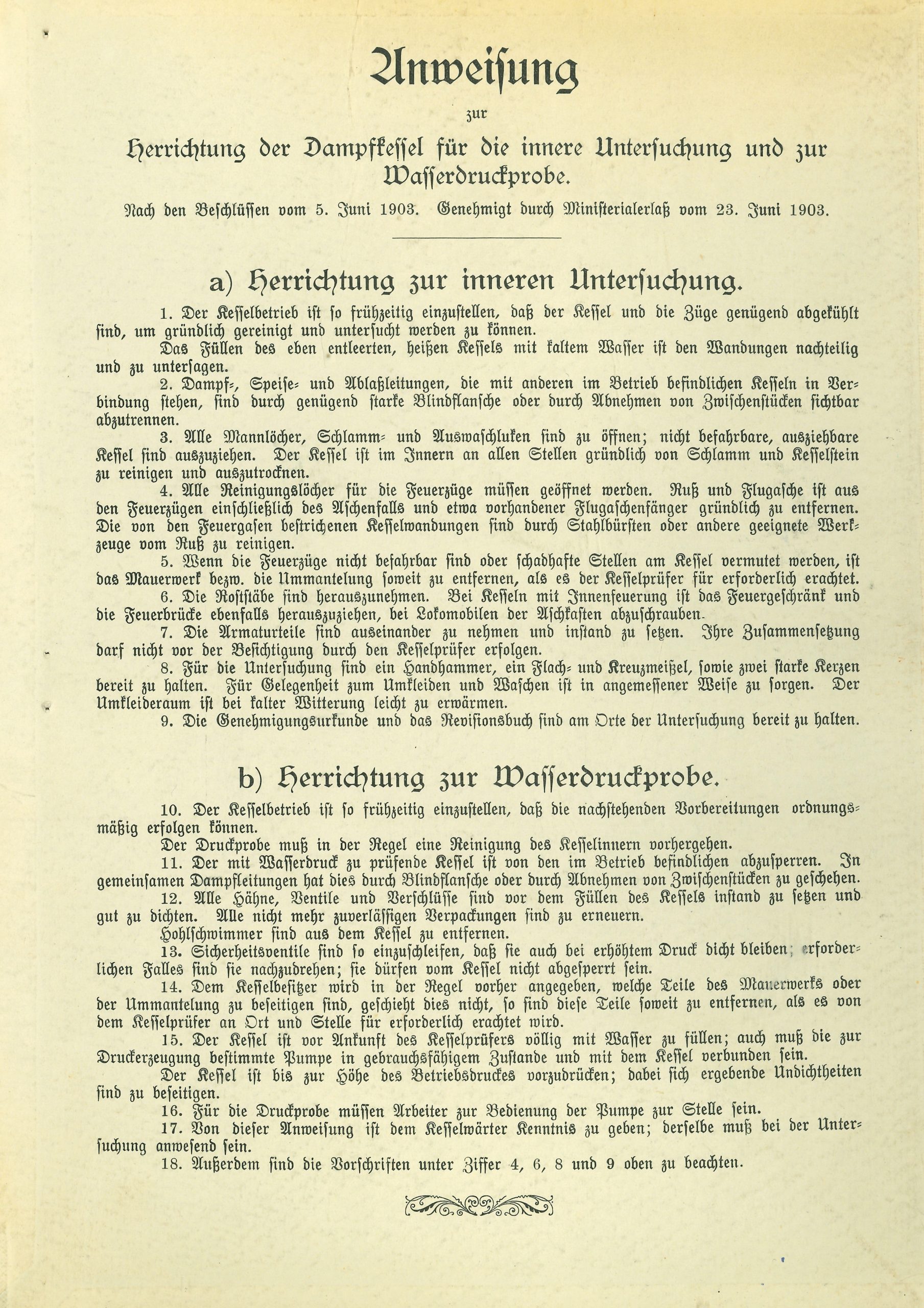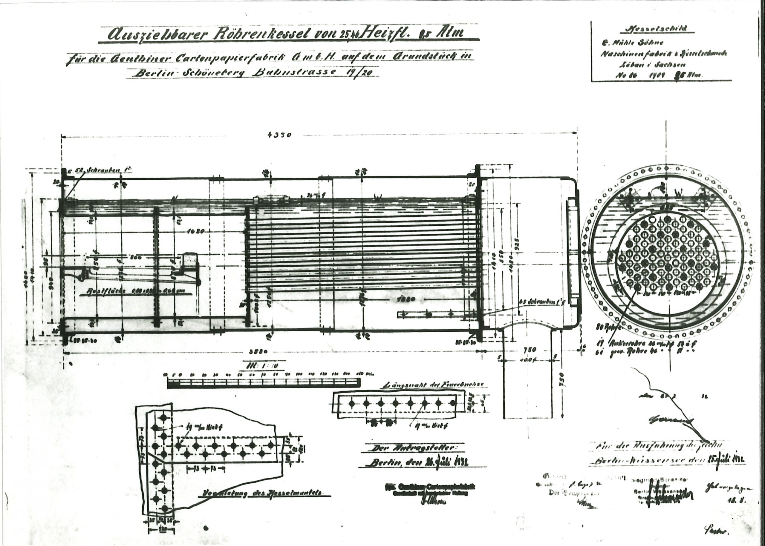 Against this background, the young engineer Carl Schneider understood that a regular inspection of the systems in operation as well as a thorough inspection of the steam boilers being put into operation is necessary to prevent industrial accidents. He presented this concept to the association of large breweries. With the consent of this association, he founded the “Dampfkessel-Revisions-Verein” [Steam Boiler Inspection Association] in Berlin on 10 February 1881. On 27 November 1881, he was informed by the royal police headquarters that he was approved as an inspector. From then on, familiar with the task of inspecting and maintaining boiler systems, he also began to educate his employees about the dangers of unnecessary pollutant emissions. The topic of environmental protection, which had hardly ever been discussed before that time, started to be taken seriously for the first time and became a feature and criterion of SCHNEIDER-KESSEL products.